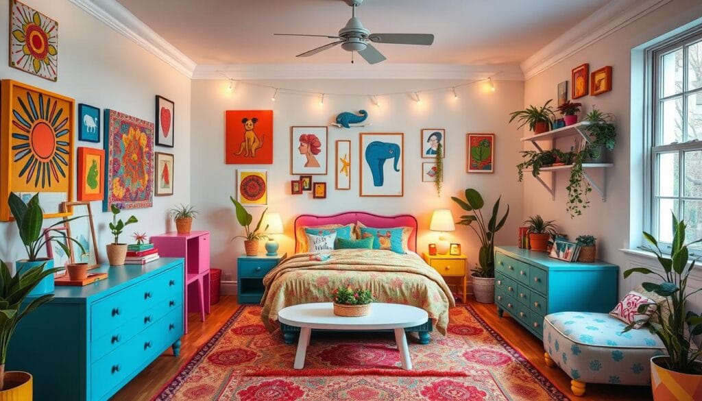 Creating a charming space starts with personalized decor. It brings whimsical interior design to life. Use custom artwork, prints, and photo collages to make your room special. It becomes a mirror of your style and memories.